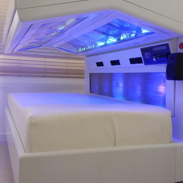 Sobre um cômodo colchão e ouvindo sua música preferida, você vai adquirindo seu bronzeamento em sessões de 30 minutos: em média 3 a 4 sessões são suficientes para adquirir uma linda cor por meses.